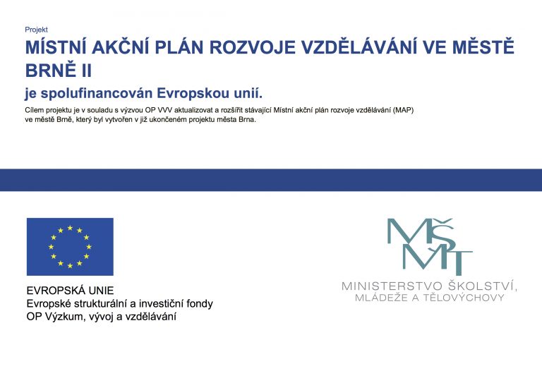 Naše škola je zapojena do projektu„Místní akční plán rozvoje vzdělávání ve městě Brně II“ (MAP Brno II).